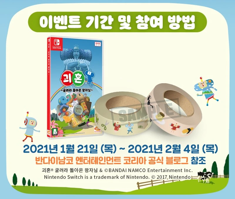 | The Korean release of Katamari Damacy REROLL came with a roll of washi tape with a design of items and cousins for a limited time. | |