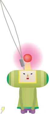 | A Prince of All Cosmos phone charm was made for the release of We ♥ Katamari. The Prince's antenna supposedly lit up as your phone rang. | Prince phone charm |