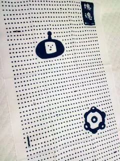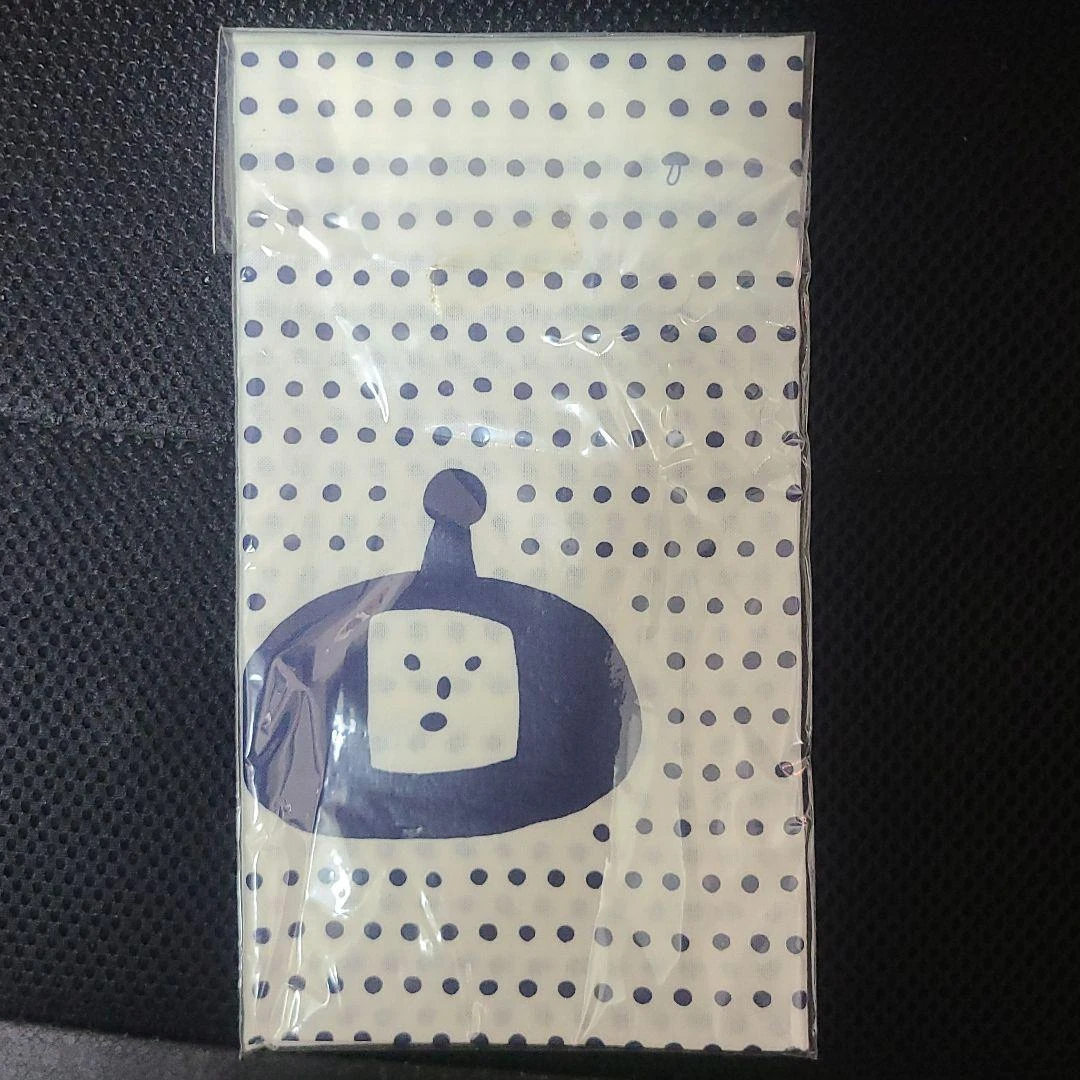 | A novelty Touch My Katamari towelette that looks to be made out of a thin fabric. | Katamari Damacy side Prince side |