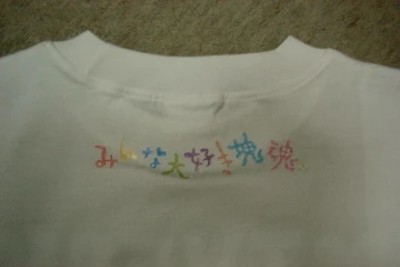 | Next Generation World Hobby Fair gave out t-shirts reading "I ♥ TVGAME" on the front and "みんな大好き塊魂" on the back, with a Prince head resembling a Gameboy Advance. | Front of the shirt Back of the shirt |